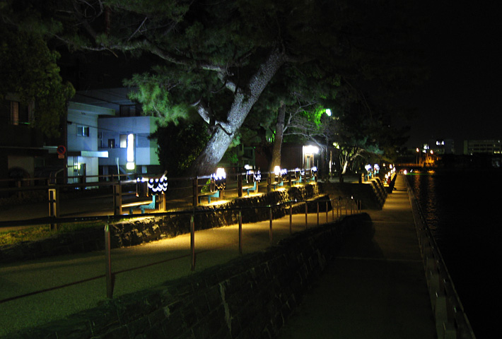 藩政時代の松並木が今も残る助任川沿いにつくられた歩道灯。