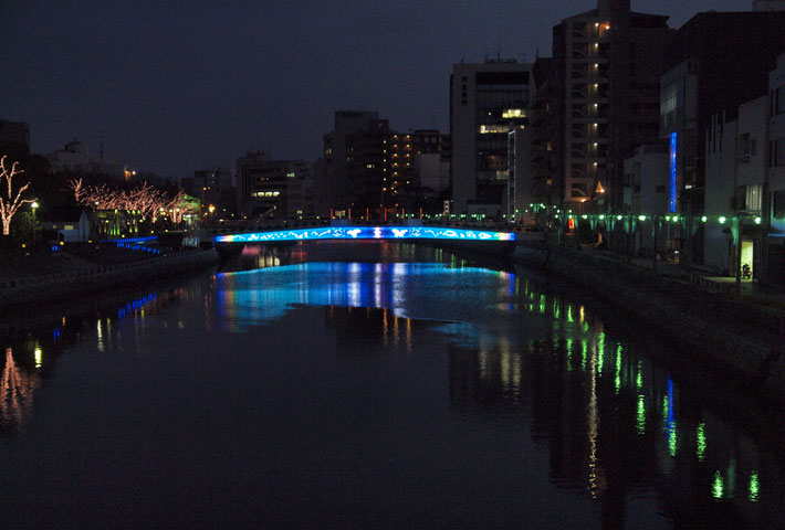 Full color LED units are supplied by NICHIA., Fureai-Bashi Shinmachi River Tokushima City Tokushima JAPAN, Ritsuko Taho (Professor of The Tokyo National University of Fine Arts and Music), Tokushima prefecture